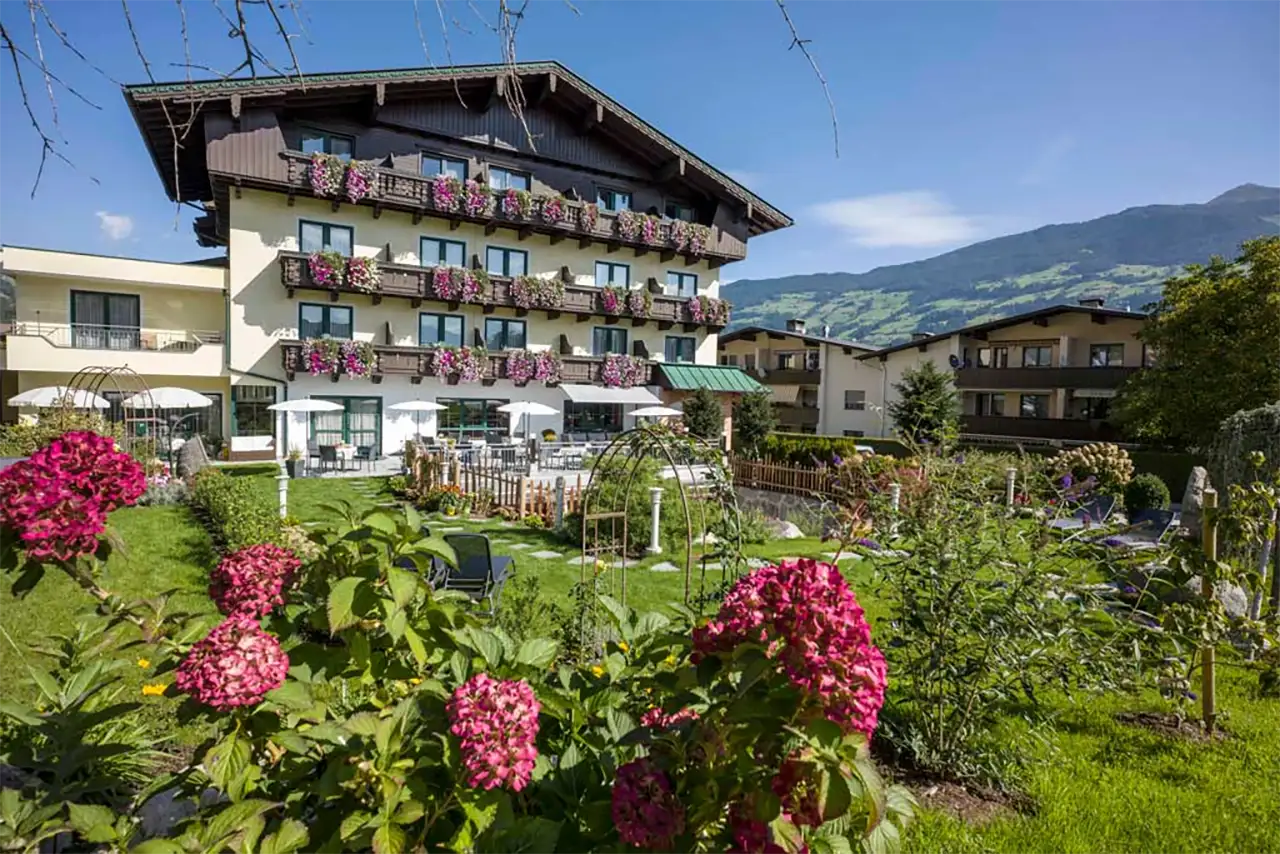 Im Sommer beginnen zahlreiche Wanderungen direkt beim Hotel, ideal für Genusswanderer wie auch für sportliche Bergfreunde. Das Freibad Fügen und die Erlebnistherme Fügen erreichen Sie in nur fünf Gehminuten. Die Spieljochbahn, die oberhalb unseres Hotels liegt, ist auch im Sommer ein beliebtes Ausflugsziel für Familien und Naturliebhaber.